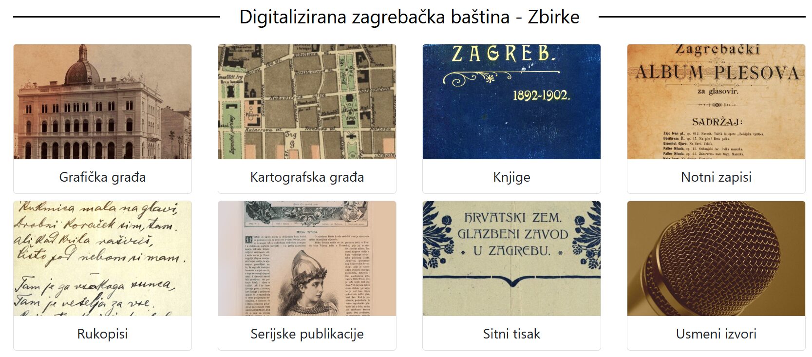 Portal Digitalne zbirke Knjižnica grada Zagreba na svojim internetskim stranicama pruža pristup zbirkama digitalne i digitalizirane građe pohranjene u repozitoriju Knjižnica grada Zagreba.