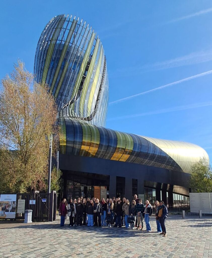Prije nekoliko dana jedanaestero se naših učenika (Barbara Škarica, Dorja Bulešić, Dita Breka, Karla Žižić, Alba Klein, Franka Alpeza, Dora Pernar, Luka Došen, Katja Keserić, Ema Gilja i Marta Babić) vratilo iz Brivea u Francuskoj gdje su u sklopu dugogodišnje suradnje naše škole sa školom Lycée Simone Veil dva tjedna pohađali redovnu nastavu i družili se sa svojim francuskim domaćinima. Otišli smo i na izlet u Bordeaux i posjetili tamošnji impresivni muzej vina La Cité du vin.